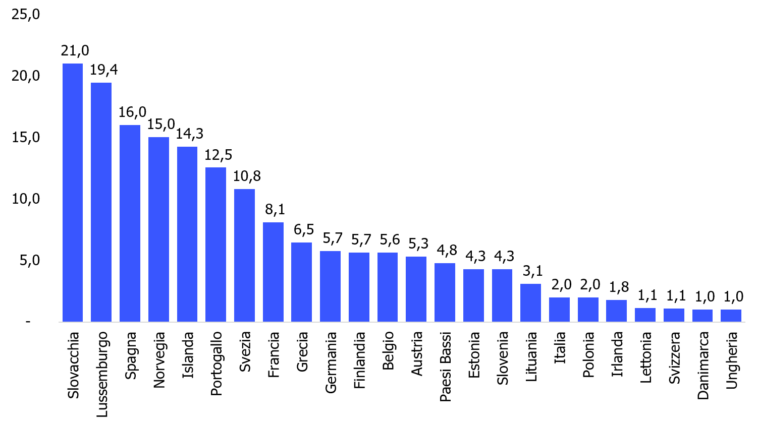 In Italia, oltre al congedo obbligatorio di cui abbiamo già parlato, i papà possono richiedere un congedo facoltativo, la cui retribuzione, però, è pari al 30% dello stipendio. Forse proprio per questo motivo, la quota di coloro che usufruiscono di questa misura, è piuttosto bassa. Nel 2022, infatti, i padri che hanno richiesto il congedo di paternità facoltativo sono stati 3.203.