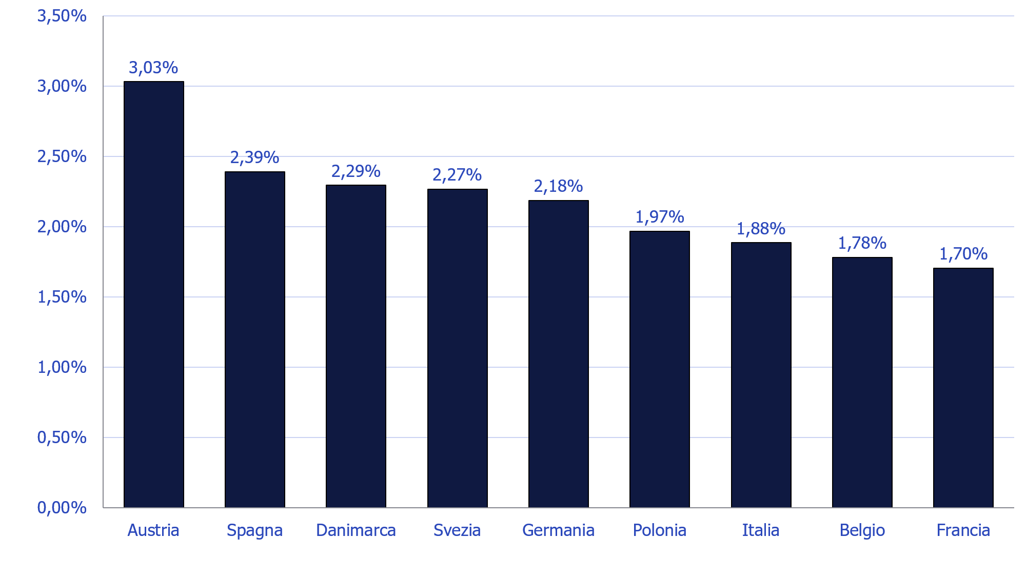 Per l’Italia il rapporto tra medici e popolazione over 65 risulta essere pari a 1,88%.